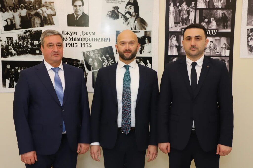 27 марта 2026 года официальная делегация Азербайджанской Республики в составе заместителя Министра культуры Азербайджанской Республики Гусейнова Мурада Фарид оглы, заведующего сектором отдела по гуманитарной политике, вопросам диаспоры, мультикультурализма и религий Администрации Президента Азербайджанской Республики Ахмедова Ганифа Гадир оглы в сопровождении Представителя Республики Дагестан в г. Баку Азербайджанской Республики Алияра Абдуллаева и советника – посланника Посла Российской Федерации в Азербайджане Юрия Павловича Спирина приняли участие в тожественных мероприятиях посвященных открытию после реконструкции здания ГБУ Республики Дагестан «Азербайджанский государственный музыкально – драматический театр» в городе Дербенте.